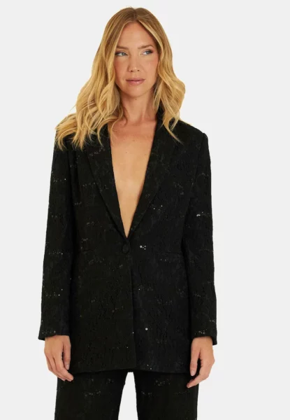 Stylizacja idealna dla miłośniczek klasycznego szyku z nutą glamour. Czarna marynarka pokryta delikatnymi cekinami Alma en Pena to esencja sylwestrowej elegancji. Jej struktura perfekcyjnie podkreśla talię, a delikatny połysk nadaje charakteru. W duecie z czarnymi, eleganckimi spodniami, komplet tworzy nowoczesny garnitur, który podkreśla siłę i klasę. Do tego czarne szpilki z odkrytą piętą Lauren Ralph Lauren – subtelne i niezwykle kobiece. Całość uzupełnij srebrną torebką Hailey od LeBrand, która doda zestawowi subtelnego połysku.